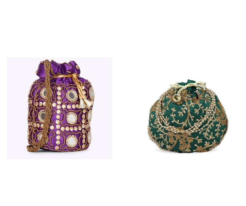 Combo – Designer Embroidered Potli Bag – Purple & Green